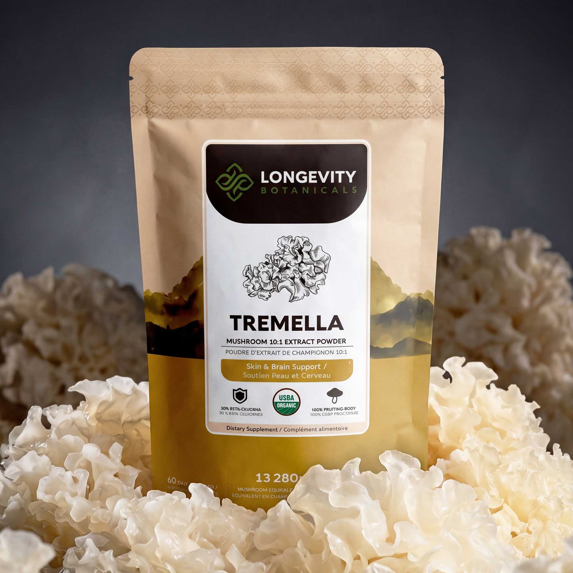 Tremella is known for supporting skin elasticity, reducing the appearance of fine lines and wrinkles, promoting a youthful complexion.